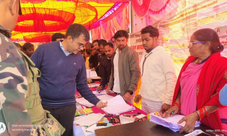लातेहार। सदर प्रखंड के नेवाड़ी पंचायत में आपकी योजना–आपकी सरकार–आपके द्वार कार्यक्रम के तहत विशेष शिविर का आयोजन किया गया. उपायुक्त उत्कर्ष गुप्ता ने इस निरीक्षण किया. निरीक्षण के दौरान उपायुक्त ने शिविर में उपलब्ध विभिन्न सरकारी सेवाओं, आवेदन काउंटरों एवं लाभ वितरण की प्रक्रिया का जायज़ा लिया. उन्होंने मौके पर उपस्थित प्रखंड विकास पदाधिकारी, लातेहार मनोज कुमार तिवारी को आमजनों की समस्याओं का त्वरित समाधान सुनिश्चित कराने एवं पात्र लाभुकों को योजनाओं का लाभ बिना किसी विलंब के प्रदान करने का निर्देश दिया.