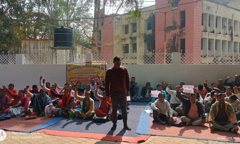 लातेहार। झारखंड राज्य आजीविका कर्मचारी संघ के द्वारा अपनी विभिन्न मांगों को लेकर आहुत अनिश्चितकालीन हड़ताल शनिवार को नौवें दिन भी जारी रहा. लातेहार जिले के सभी प्रखंडों के एल-5 से एल–8 स्तर तक के जेएसएलपीएस कर्मी जिला मुख्यालय में धरना–प्रदर्शन कर रहे हैं. यह हड़ताल राज्य के सभी 24 जिलों में एक साथ जारी है और सभी कर्मी पूरी तरह कार्यबंदी पर हैं. कर्मियों की प्रमुख मांगों में एनएमएमयू न्यू एचआर मॉडल लागू करने, राज्यकर्मियों का स्थायीकरण व सेवा–सुरक्षा, वेतन पुनरीक्षण, दस प्रतिशत वार्षिक वेतन वृद्धि करने, एल–5 से एल–8 कर्मियों की अनुभव आधारित पदोन्नति तथा स्थानांतरण नीति में समानता करने की मांग शामिल है.