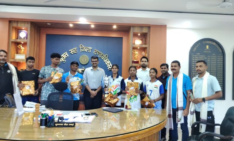 लातेहार। जिला खेल कार्यालय द्वारा संचालित आवासीय एवं डे-बोर्डिंग प्रशिक्षण केंद्रों के बालक व बालिका खिलाड़ियों द्वारा वर्ष 2025 में राज्य एवं राष्ट्रीय स्तर की विभिन्न प्रतियोगिताओं में उत्कृष्ट प्रदर्शन किया गया है. शुक्रवार को उपायुक्त उत्कर्ष गुप्ता ने इन प्रतिभावान खिलाड़ियों को अपने कार्यालय वेश्‍म में सम्मानित किया. उपायुक्त ने खिलाड़ियों का उत्साहवर्धन करते हुए कहा कि लातेहार जिले की खेल प्रतिभाओं की कमी नहीं है. यहां की खेल प्रतिभायें राज्य और देश में लातेहार जिले का नाम रोशन कर रही हैं.  जिला प्रशासन इनके सर्वांगीण विकास और बेहतर प्रशिक्षण की दिशा में हर संभव सहयोग करेगा. मौके पर जिला खेल पदाधिकारी  अविनेश कुमार त्रिपाठी उपस्थित थे.