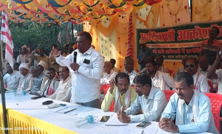 कुरमी को आदिवासियों में शामिल करने की मांग के विरोध में आदिवासी संगठनों ने निकाली आक्रोश रैली