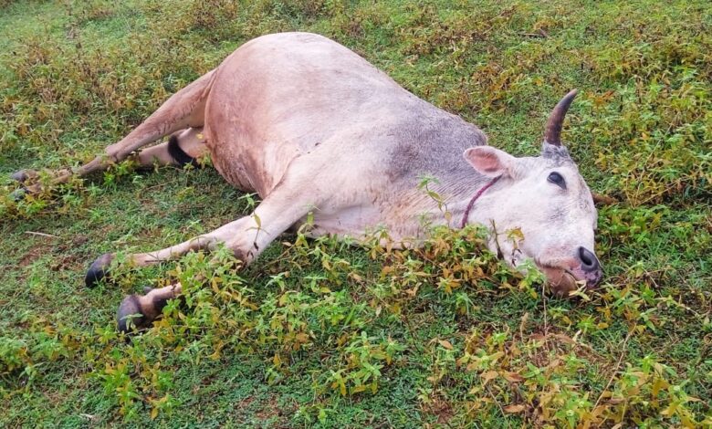 महुआडांड़(लातेहार)। महुआडांड़ प्रखंड में पिछले दो दिन लगातार हुइ वज्रपात में दो मवेशियों की मौत हो गई. पहली घटना चैनपुर पंचायत के ग्राम हरिनगुडा में बुधवार दोपहर हुई. वज्रपात से किसान एलेक्स एक्का पिता बेनेदिक एक्का के एक बैल की मौत हो गई. दूसरे दिन गुरुवार दोपहर हुई. वज्रपात से गड़बूढनी पंचायत के ग्राम बराही निवासी कुलदीप बेक का एक बैल की मौत हो गई. किसान ने बताया कि मैदान में मवेशी घास चर रहा था. अचानक मौसम बदला मवेशी वापस लौट रहे थे. इसी दौरान हुई गर्जन के साथ हुए वज्रपात की चपेट में आने से मौके पर मौत हो गई. इस घटना से दोनों किसान के परिवार दुखी हैं. दोनो परिवारों ने मुआवजा की मांग प्रशासन से की है.