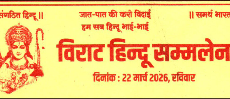 लातेहार। सकल हिंदु समाज के तत्वावाधन में 22 मार्च को जिला मुख्यालय के पुराना पुलिस लाइन मैदान में विराट हिंदु सम्मेलन का आयोजन किया जायेगा. इससे पहले शहर के बाजारटांड़ स्थित प्राचीन शिव मंदिर से कलश एवं शोभा यात्रा निकाली जायेगी. कलश यात्रा नगर भ्रमण करते हुए धर्मपुर स्थित पुराना पुलिस लाइन मैदान पहुंचेगी. इसके बाद यहां सामुहिक हनुमान चालिसा का पाठ किया जायेगा. इसके बाद बौद्धिक प्रवचन व भोजन का आयोजन किया जायेगा. इस सभी कार्यक्रमों में भाग लेने की अपील नगर वासियो से की गयी है. आयोजन की तैयारियों मे सुरेश ठाकुर, अनिल ठाकुर, धमेंद्र जायसवाल, मनमोहन राम समेंत कई लोग सक्रिय हैं. मौके पर सुरेश ठाकुर ने कहा कि आज भारत और हिंदु कई प्रकार की चुनौतियों से जूझ रहा है. हमें एकजुट और संगठित होना होगा. उन्होने कहा कि सनातन व हिंदु परंपरा प्राचीन काल से समृद्ध और गौरवशाली रहा है, हमें उसे फिर से प्राप्त करना है.
