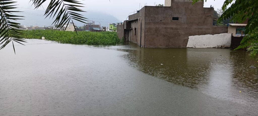 अमवाटीकर में घरों में घुसा पानी, लोग हैं परेशान