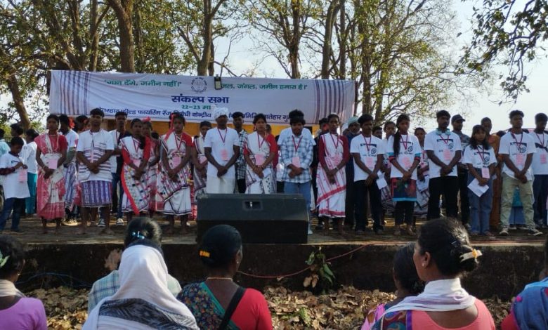 जल जंगल जमीन हमारा है, जान देंगें जमीन नहीं देगें………………