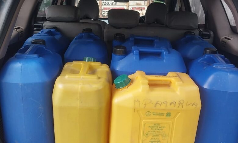 लातेहार। पुलिस अधीक्षक कुमार गौरव को मिली गुप्त सूचना पर पुलिस ने एक एक्सयूवी कार से 20 गैलन स्प्रिट बरामद किया है. स्प्रिट को रांची से लोड कर लातेहार ले जाया जा रहा था. सूचना के आधार पर अनुमंडल पुलिस पदाधिकारी अरविंद कुमार के नेतृत्व में छापामारी दल बनाया गया. सरोज नगर स्थित मिशन स्कूल के पास सघन वाहन जांच के दौरान एक्सयूवी को पकड़ा गया. कार से 20 गैलन स्प्रिट बरामद किया गया. इसका वजन करीब छह सौ किलोग्राम है.