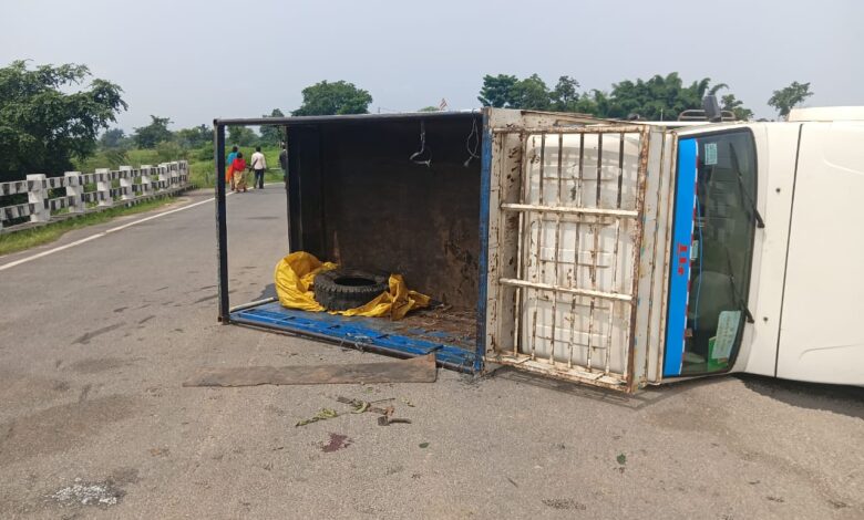 केंदवाही नदी पुल पर पिकअप वैन पलटी, कई मजदूर घायल
