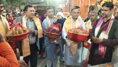 राधे कृष्ण की प्रतिमा की प्राण प्रतिष्ठा को ले कर निकाली गयी शोभा यात्रा