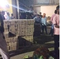 सब्जी लदी वाहन से पुलिस ने जब्त किया दर्जनों पेटी शराब