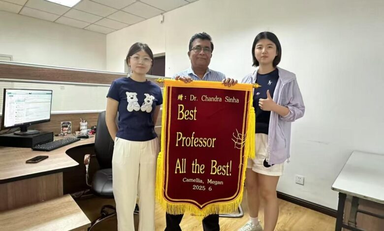 गौरतलब है चीन की सरकार के द्वारा वर्ष में एक बार कैमलिया सम्मान अर्थात चीन में रह रहे विदेशी नागरिकों को मैत्री, सहयोग , संस्कृति,शिक्षा, विज्ञान, तकनीक, व्यापार या सामाजिक क्षेत्र में हरियाली लाने में असाधारण योगदान करने वाले अपने विदेशी मेहमानों को प्रत्येक वर्ष सम्मानित करता है. चीन का यह राष्ट्रीय सम्मान भारत वंशीय प्रोफेसर सिन्हा को शिक्षा एवं हरियाली में विशेष योगदान देने के लिए प्रदान किया गया है. मालूम हो श्री सिन्हा प्रत्येक वर्ष के दिसंबर महीने में होने वाले वैश्विक वार्षिक अवकाश के दौरान भारतवर्ष आते हैं और इस दौरान उनका लातेहार प्रवास भी अवश्य होता है.